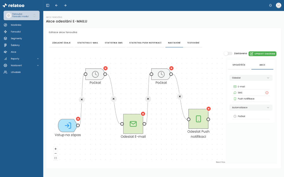 Spolehlivý parťák pro efektivní komunikaci, který umožní Vaše fanoušky segmentovat a nastavit vlastní marketingové akce včetně jejich spuštění.